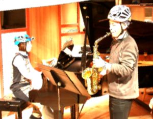 実践としてのクライミングヘルメットをかぶりながらの演奏@Nerima