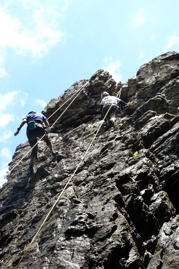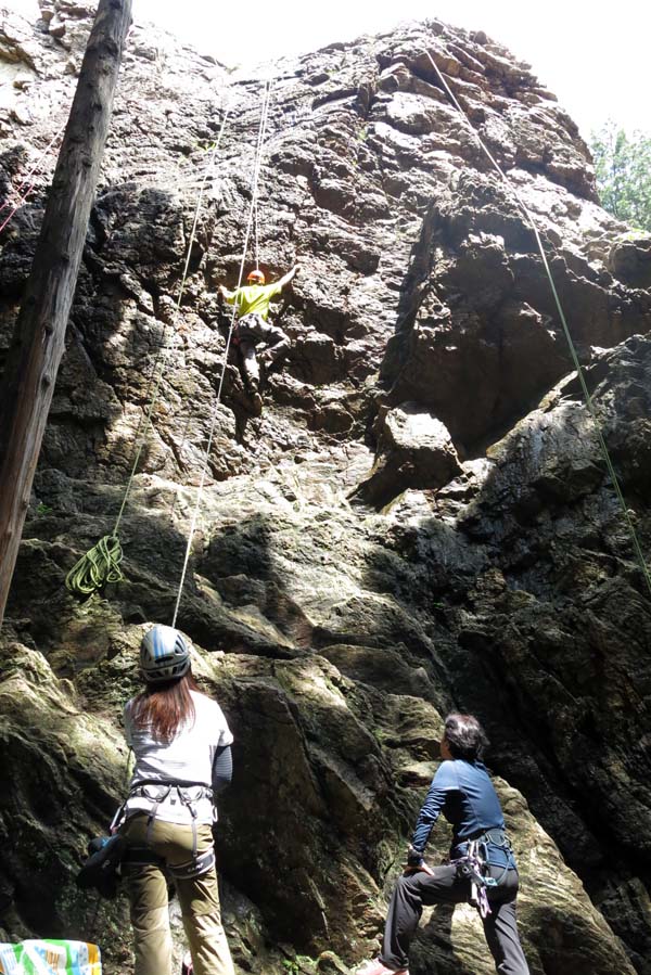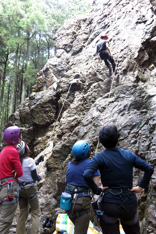 ちょっとだけ晴れた日曜日(6月29日)、日和田山のゲレンデに8人で岩トレに行ってきました。日和田デビューのメンバーは半分もいたけど、ビギナーとは思えない果敢な登りに、思わず「いいね!」を連発。はじめのうちは濡れていた岩も、次第に乾き、まずまずのコンディションに。