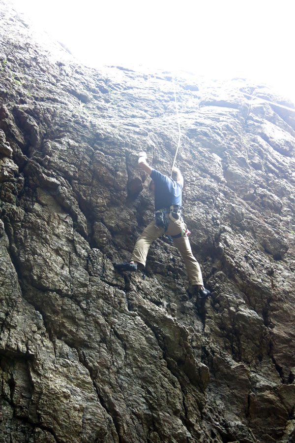 登りはじめは、岩もしめっていたが、前回ほどではなかった。午後には日も出てきて、青空ものぞくようになった。でも前回の雷雨がトラウマとなっていて、3時前には切り上げた。