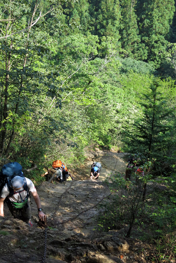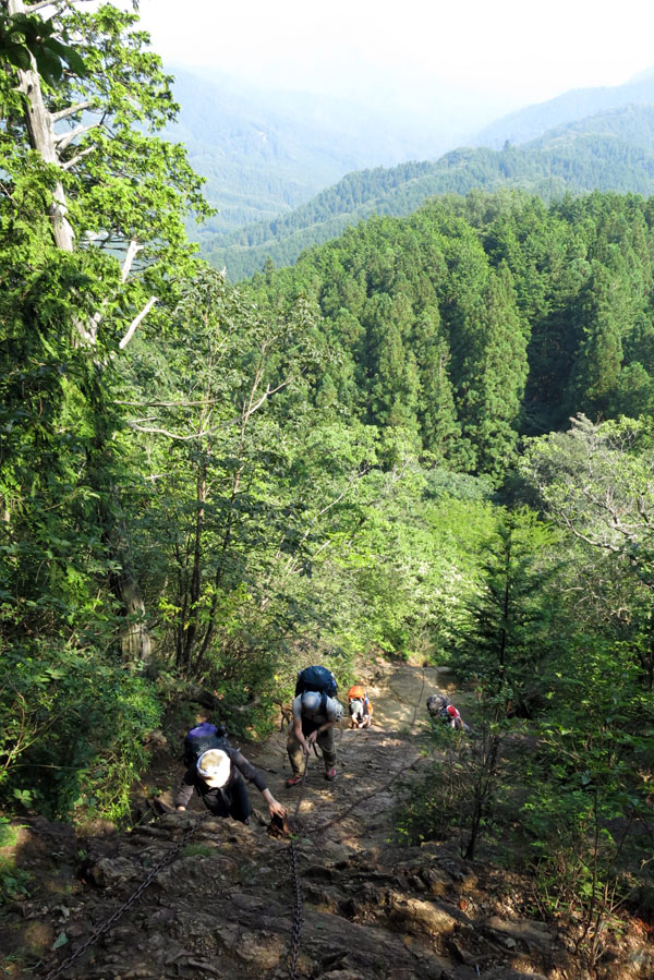 すさまじい蒸し暑さの中、まじめに20㌔をしょってきた人も。全員汗だくでしたが、熱中症にもならず、一人も雷に打たれることもなく無事終了。本当にお疲れさまでした!