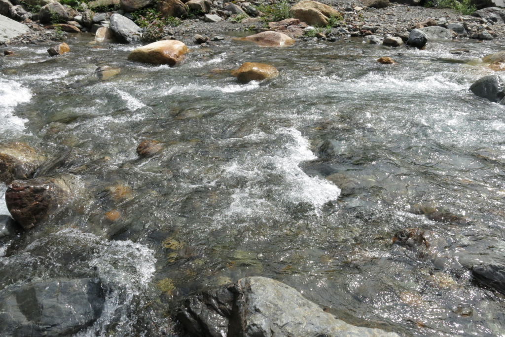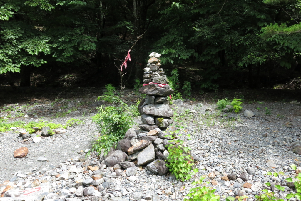 鋸岳に向かう我々に、たまたま外に出ていた(本当は登山者の様子を見ていたのかも)大平(おおだいら)山荘のおかみさんが「角兵衛沢の出合は分かりづらいから気をつけて」「きのう雨が結構降ったから、渡渉には気をつけなさい」「(山の)経験はあるんでしょ?」などと心配そうに声をかけてくれた。数分にも満たない会話だったけれども、心がぽっと温まる。