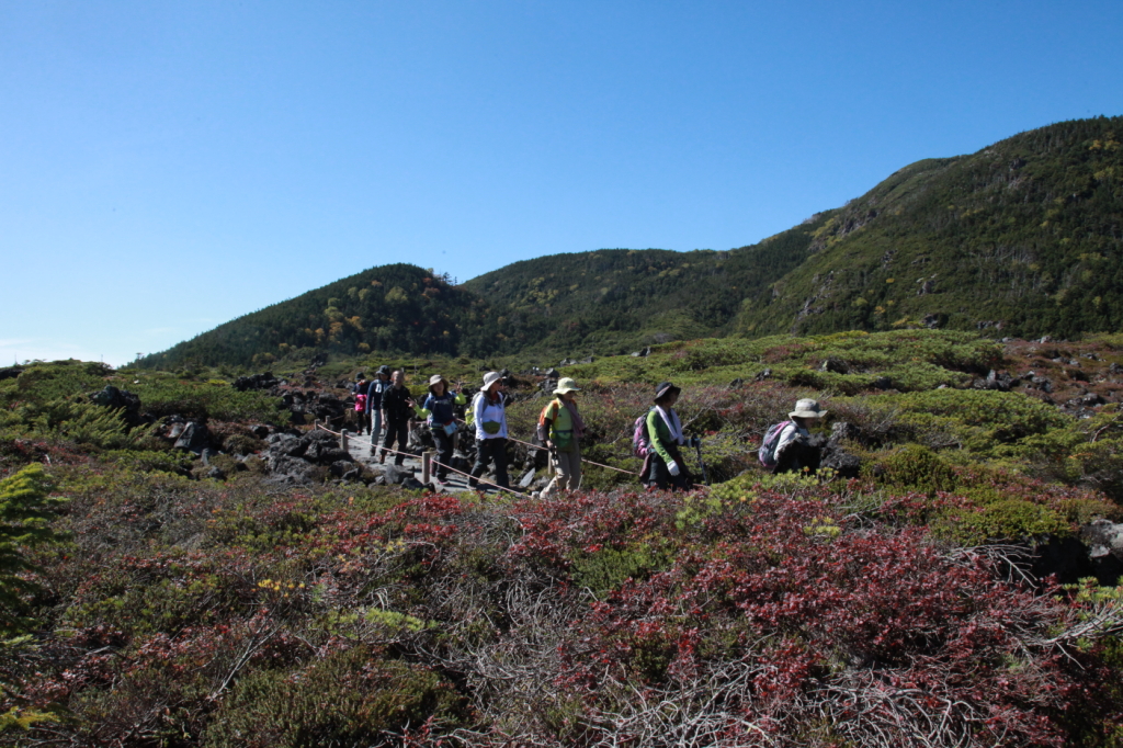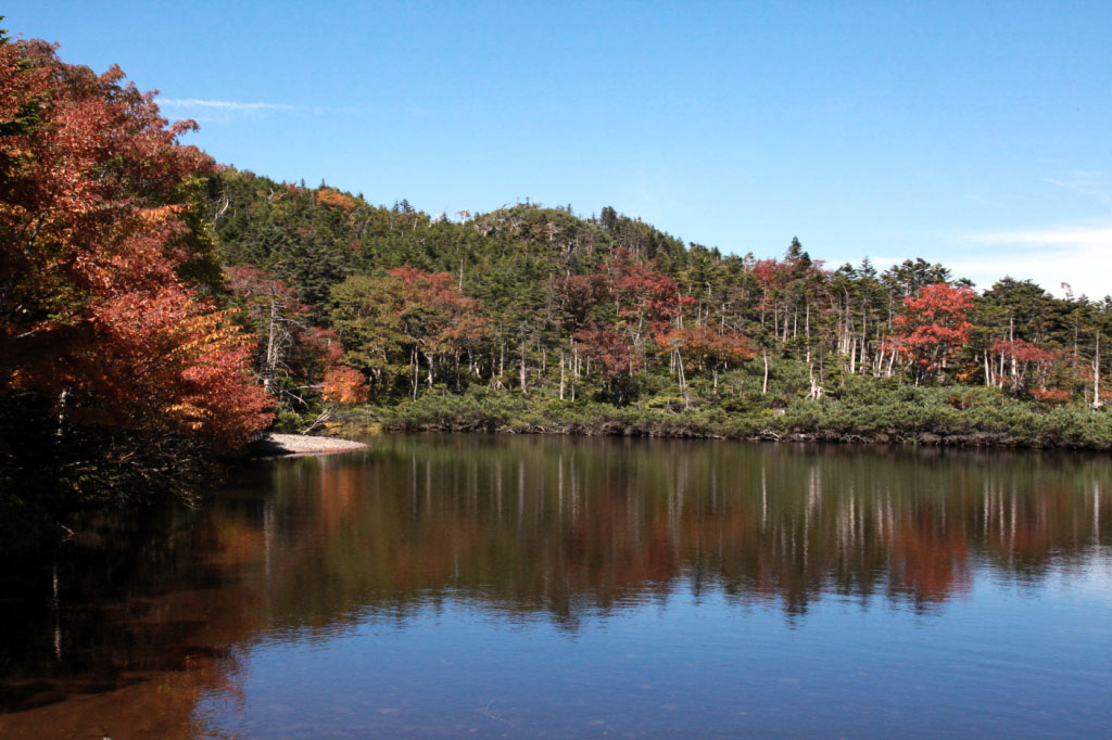 ロープウエイ山頂駅9:50→北横岳ヒュッテ11:00→北横岳11:15→北横岳・北峰11:25→七つ池11:50→縞枯山荘13:20→13:55ロープウエイ山頂駅14:20→14:27ロープウエイ山麓駅→音無の湯→信州蕎麦→中央道→20:30東京・清瀬駅