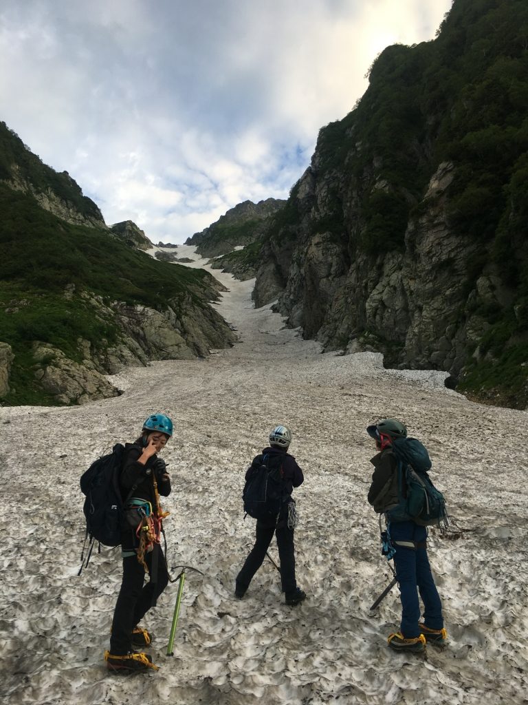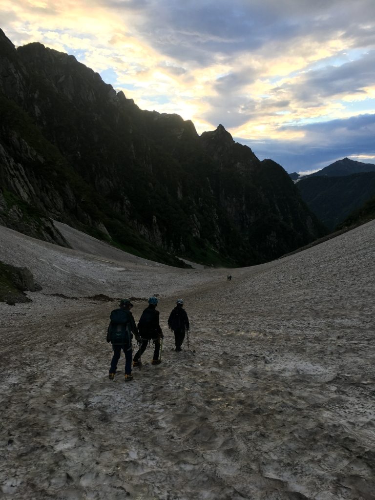剱沢雪渓を下る