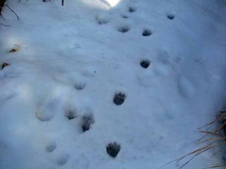 トレースが全然無い!不安に駆られるが標識は確りしている、進む登山道上に延々と獣の足跡?「後に付いて来て案内する」とばかりに。案内といえば最近目にした山と渓谷社の「低山を歩く」横山厚夫著の登山道にある赤テープ考に「登山者だけの山ではない」として回収した赤テープの山の写真が掲載してあったが・・・人それぞれ考え方は異なるとは思うが(この赤テープばかり頼り周囲を見なくなるとは思わないし)この方はビニールではなく赤布ならばとは書いてあったが、この赤ビニールを取り除いた箇所を赤布に替えたとは記載されていなかった。私はゴミ扱いどころか時々赤テープに助けられ、心強く快適に山を歩かせて頂いる一人として除去した後が気になった。