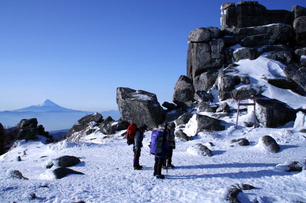 秀峰富士ーー。この言葉がぴたりと当てはまる。いろいろな山から富士を見てきたが、この金峰山五条岩から望んだ富士のあまりにきれいな姿が、いまも目に焼き付いている。 (2006年3月4〜5日 奥秩父・金峰山)