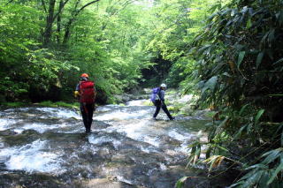 井戸沢とはまた違い、緑と流水と光の絶妙なバランスで構成する渓相が、とても美しい。大きな滝や淵もなく、入渓から1時間半ほどでキャンプサイトに着いた。しめて6時間の行程であったが、大吟醸のような深みのあるハイ・サワーを味わわせてもらった。
