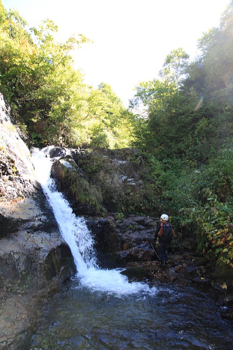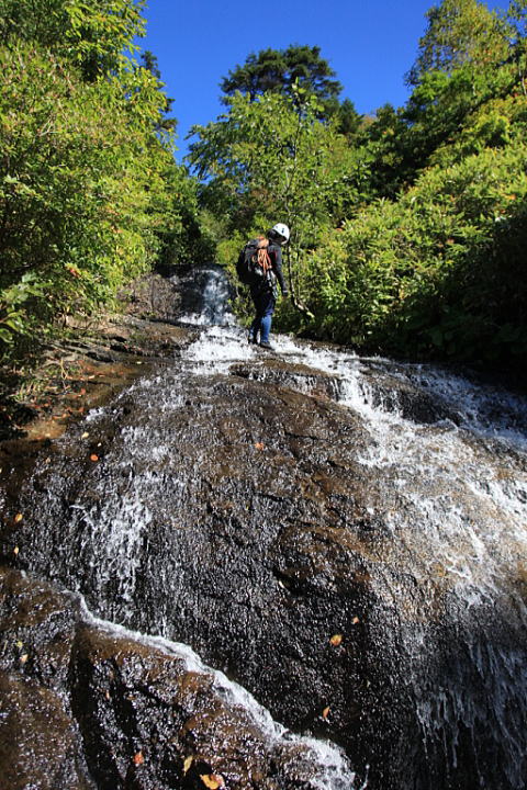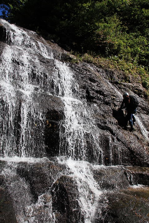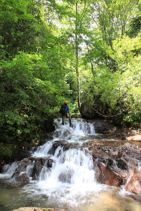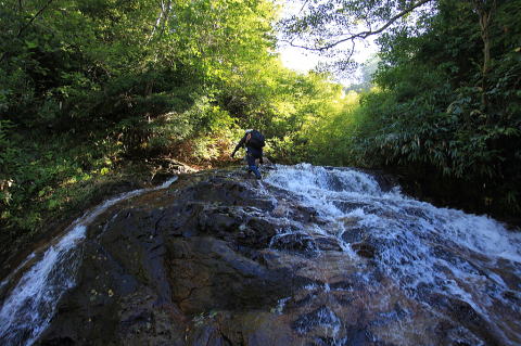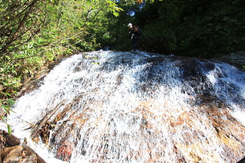 入渓してすぐのナメ滝でポーズを決めるYoidoreYamaOyaji![]() |