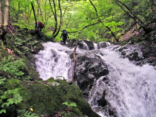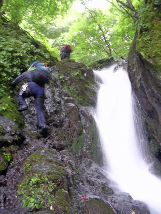 奥多摩駅からバスで10分、惣岳バス停で下車し、そこから徒歩15分、計30分ほどで入渓できるというお手軽沢で、それほど期待はしていなかったのだが、入渓してびっくり、十分楽しませてもらうことができた。台風の二日後ということも影響していたのだろうが、水量が多いわりに、ほとんど直登できるお手頃沢だった。惣岳山や御前山も近く、秋のハイ・サワーコースとしても、お手頃かもしれない。