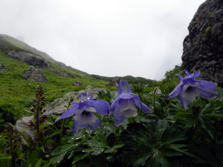 | 雨に濡れるミヤマオダマキ。大雪渓を終えて=8月2日 |