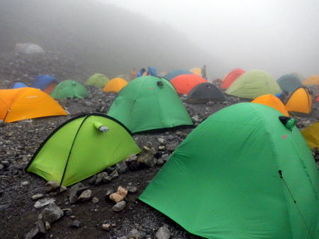 | 白馬頂上宿舎のテント場。エスパース2張が今宵の宿=8月2日 |