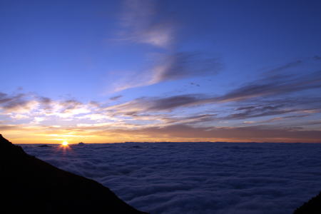 | 雲海から顔を出したお日様さん。やっとお会いできました!=8月3日、午前4時57分 |
