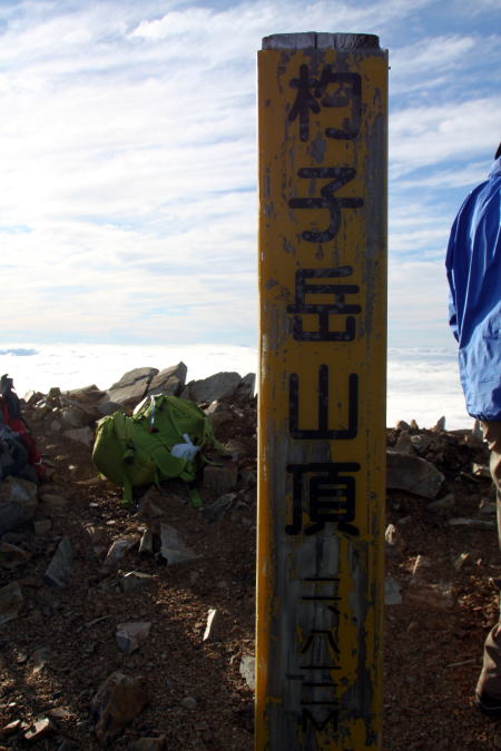 | 杓子岳頂上の標識。百高山65座目となった |