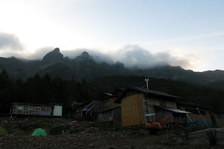 | 赤岳鉱泉の朝。きょうも晴れそうだ=8月18日 |